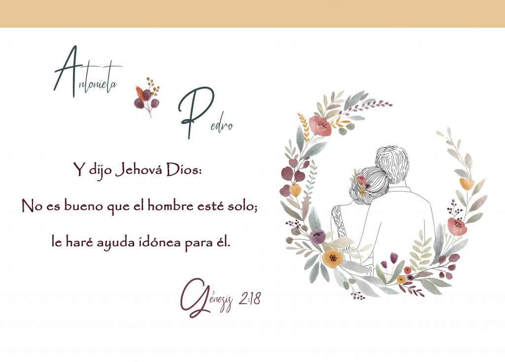 Esperamos la unión matrimonial que comienza para ustedes hoy, este llena de mucho amor, paciencia, respeto y disposición, para que puedan superar las pruebas que surjan en su convivencia como pareja. ¡Muchas Felicidades!