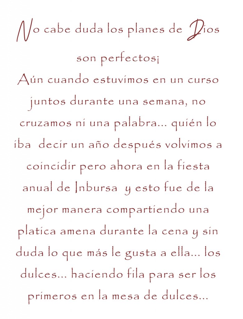 Queridos Hermanos , QUE EMOCIOOOOON!, Antes que nada agradezco su invitación me gozo con ustedes en esta decisión, conocí un poco de los dos en el evento de más 30 donde me tocó ver y vivir esa gran promesa inesperada para todos ! Sin Duda Dios no se equivoca y nunca llega tarde . Les deseo con toda mi alma que Dios sea su fuente de amor en esta etapa que sin duda será la mejor ... Gracias por hacerme participe .. les mando un abrazote con mucha alegría y felicidad !!! 2 da Samuel 22:31 El camino de Dios es perfecto ;la promesa del señor es digna de confianza ..